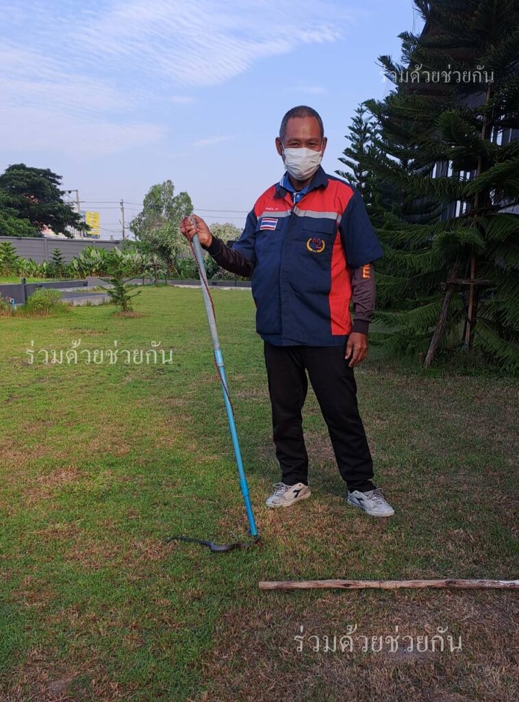 อาสาร่วมด้วยช่วยกัน รับแจ้งจากประชาชนขอความช่วยเหลือจับสัตว์เลื้อยคลาน ภายในบริเวณพื้นที่บ้าน ซอยราชวินิตบางแก้ว ถ.เทพรัตน(บางนา-ตราด) กม.ที่ 7 ต.บางแก้ว อ.บางพลี จ.สมุทรปราการ พบเป็นงูเห่าจำนวน 1 ตัว ความยาว 50 ซม. หลบซ่อนตัวอยู่บริเวณสนามหญ้าข้างบ้าน