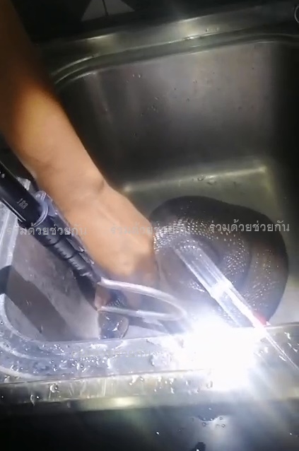 คุณกุล ขอความช่วยเหลือ มีงูซุกอยู่ในอ่างล้างจานในห้องครัว ที่บ้านพัก ซอยนิมิตใหม่ 40 แขวงสามวาตะวันออก เขตคลองสามวา กรุงเทพฯ ศูนย์สื่อสารร่วมด้วยช่วยกัน ประสาน อาสาร่วมด้วยฐานคุ้มภัย เข้าไปช่วยจับ