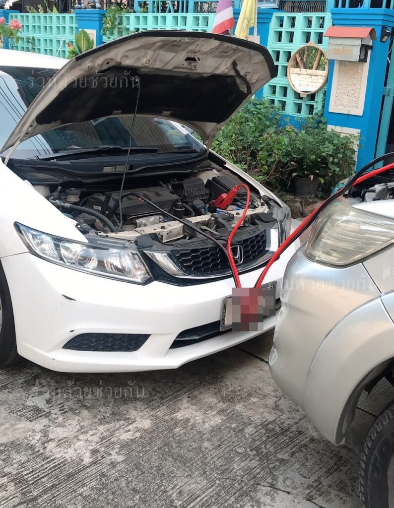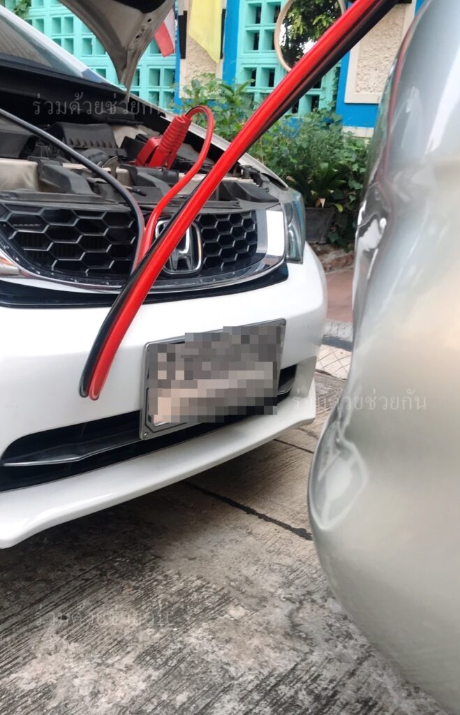 อาสาร่วมด้วยได้นำอุปกรณ์เข้าช่วยเหลือ ทำการพ่วงแบตเตอรี่รถให้ รถสตาร์ทเครื่องยนต์ติด ขับเคลื่อนต่อไปได้ พื้นที่สน.ทุ่งครุ