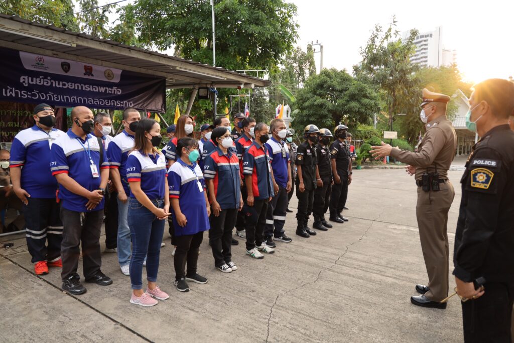 นายอภิวัฒน์ รัตนนาคินทร์ ผอ.ร่วมด้วยช่วยกัน , พ.ต.ท.สืบศักดิ์ ผันสืบ รอง ผกก.จราจร สน.วังทองหลาง , ร.ต.อ.จตุพงษ์ หงษ์กาญจพงษ์ กต.ตร.สน.วังทองหลาง พร้อมกำลังเจ้าหน้าที่ตำรวจ อาสาตำรวจชุมชนชุดอินทรีย์เหล็ก และอาสาร่วมด้วยช่วยกัน ร่วมกันปล่อยแถวกำลังเจ้าหน้าที่ คอยดูแลความปลอดภัยในชีวิตและทรัพย์สินของประชาชน ในการป้องกันระวังภัยช่วงเทศกาลลอยกระทง โดยนำกำลังอาสาร่วมด้วยช่วยกัน ตำรวจชุมชนชุดอินทรีย์เหล็ก สน.วังทองหลาง ตั้งจัดตั้งศูนย์อำนวยการเฉพาะกิจเฝ้าระวังภัยเทศกาลลอยกระทง ปี 2565 ร่วมทำกิจกรรมโดยจัดวางระบบการติดต่อสื่อสาร (วิทยุสื่อสาร) จัดเตรียมอุปกรณ์ชุดกระเป๋ายาปฐมพยาบาลเบื้องต้น / อุปกรณ์ช่วยเหลืออุบัติภัยทางน้ำ จัดเตรียมแบ่งกำลังพล สายตรวจเดินเท้า เฝ้าระวัง ป้องกัน ระงับเหตุ พร้อมจัดระเบียบการจราจร ตลอนจนดูแลความเป็นระเบียบเรียบร้อยภายในงาน