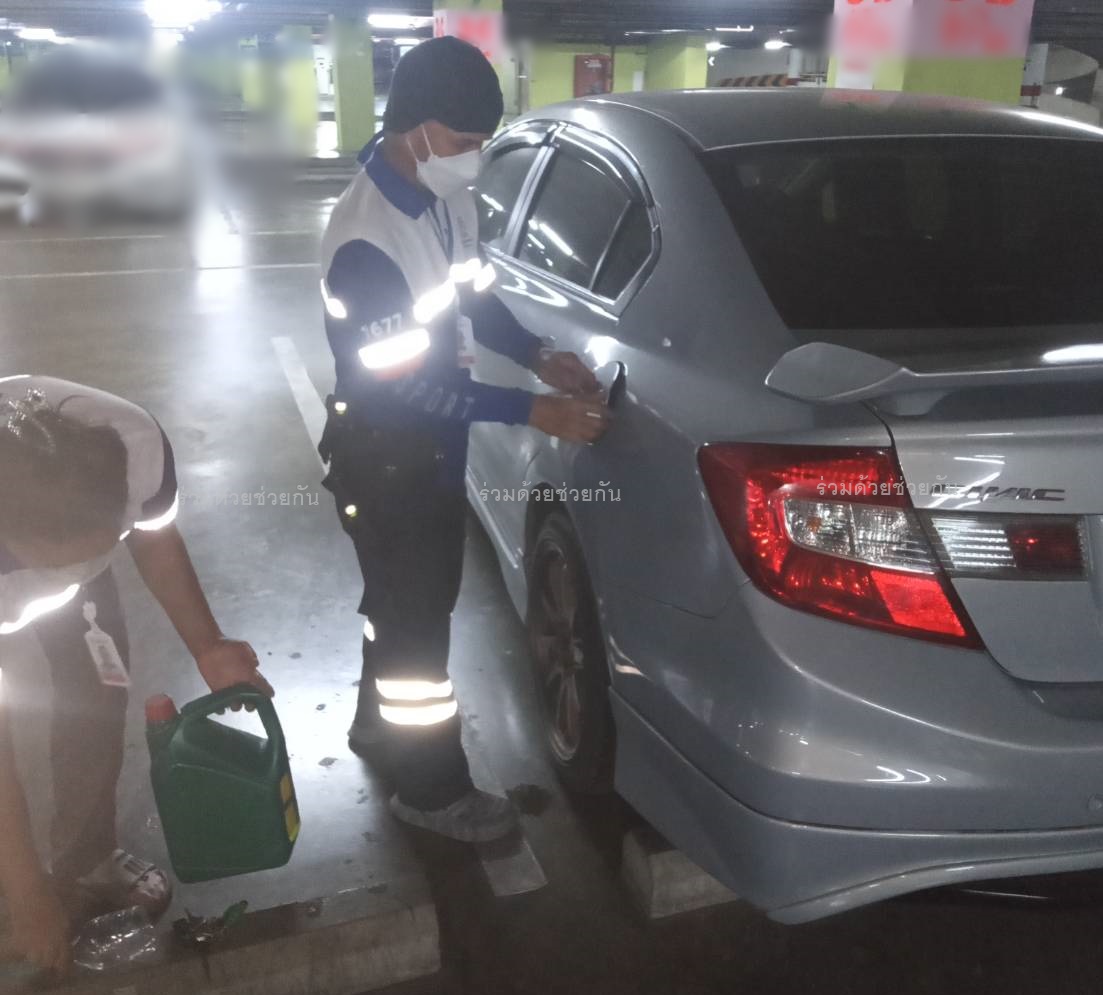 คุณธันยาพร ขอความช่วยเหลือรถน้ำมันหมด รถยนต์ฮอนด้า ซีวิค จอดอยู่อาคารลานจอดรถชั้น 3 ของศูนย์การค้า ถนนกำแพงเพชร 2 แขวงจตุจักร เขตจตุจักร กรุงเทพฯ