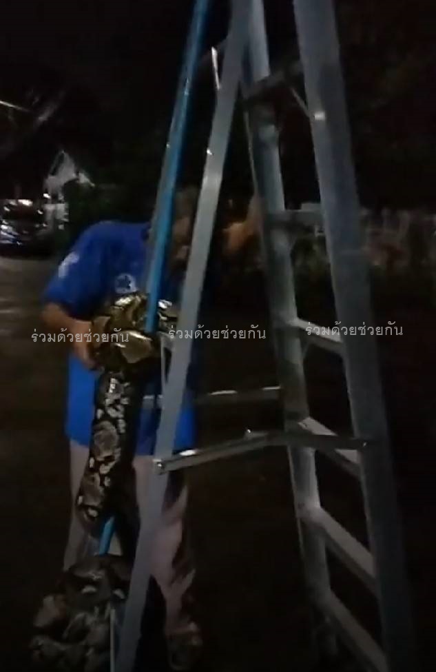 ตกใจ งูเหลือมขดบนต้นไม้หน้าบ้าน ซอยประชาอุทิศ 54