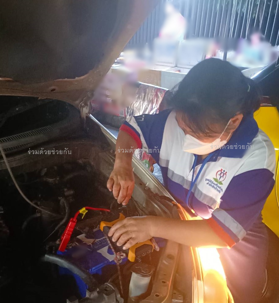 ศูนย์สื่อสารร่วมด้วยช่วยกัน ประสาน อาสาร่วมด้วยช่วยกัน เข้าไปช่วยพ่วงแบตเตอรี่ให้ รถสตาร์ทติดขับเคลื่อนต่อไปได้