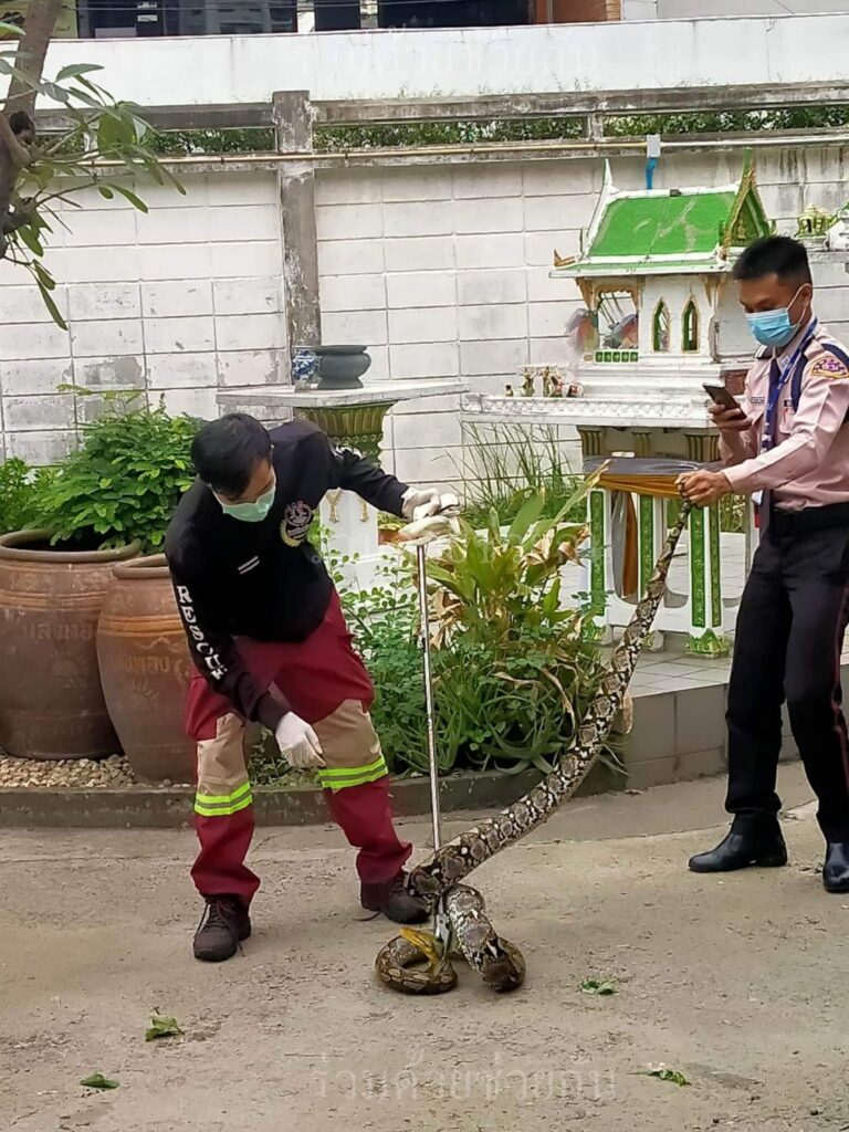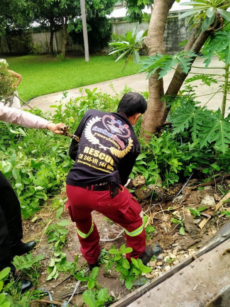 อาสาฯจับงูเหลือมภายในบ้าน ถ.พระราม 3 ซอย 38