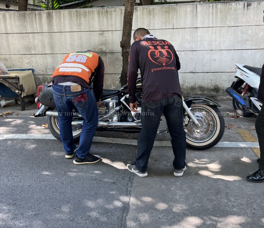 ตรวจสอบพบรถจักรยานยนต์สตาร์ทไม่ติด สาเหตุเกิดจากแบตเตอรี่หมด อาสาฯ จึงช่วยพ่วงแบตเตอรี่ให้ รถสตาร์ทติดขับเคลื่อนต่อไปได้
