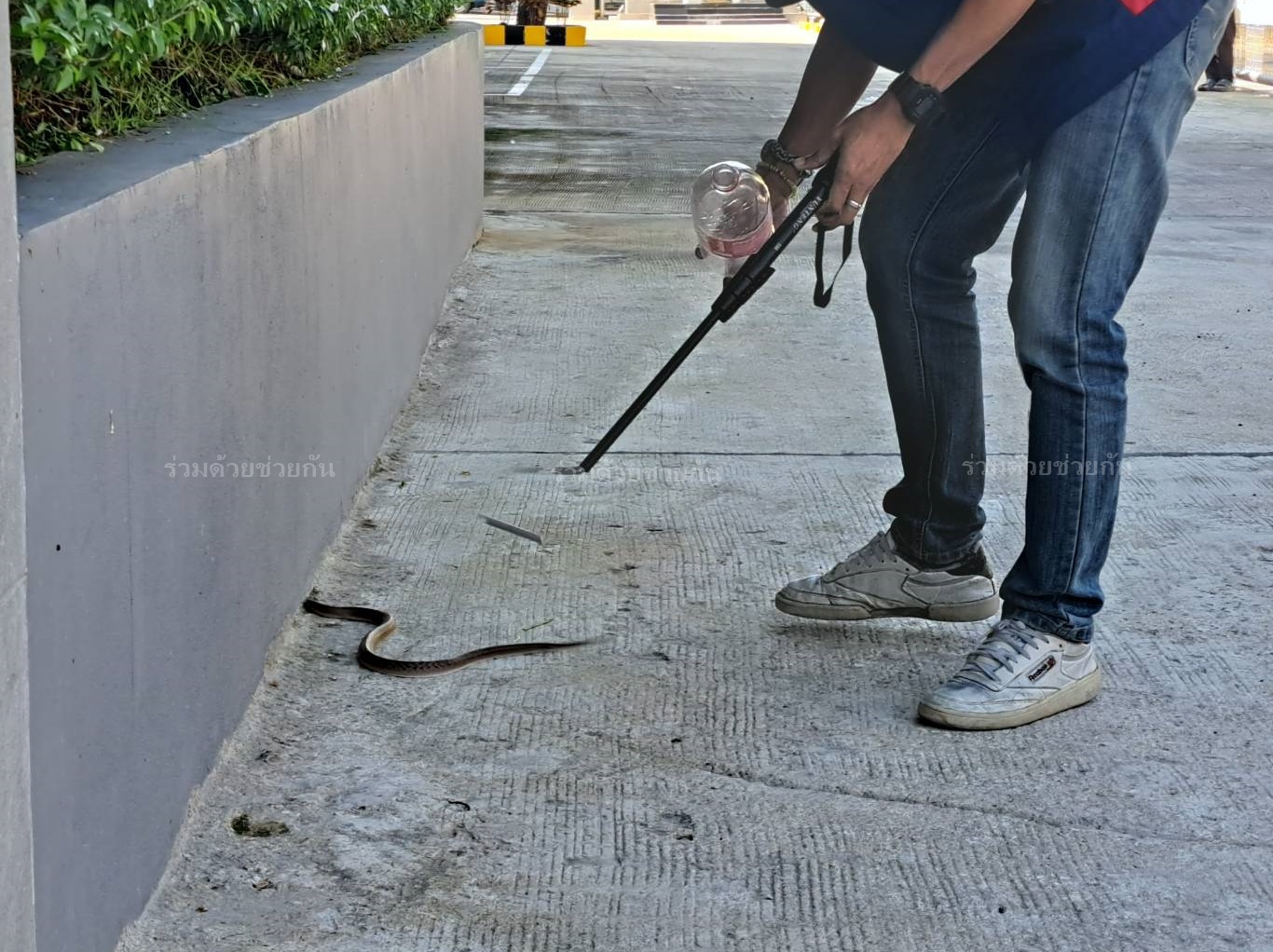 อาสาร่วมด้วยช่วยกัน รับแจ้งจากประชาชนขอความช่วยเหลือ มีงูเลื้อยเข้ามาซุกตัวอยู่บริเวณหน้าอาคาร ภายในซอยรามคำแหง 21 แขวงพลับพลา เขตวังทองหลาง กรุงเทพฯ เกรงจะเป็นอันตราย