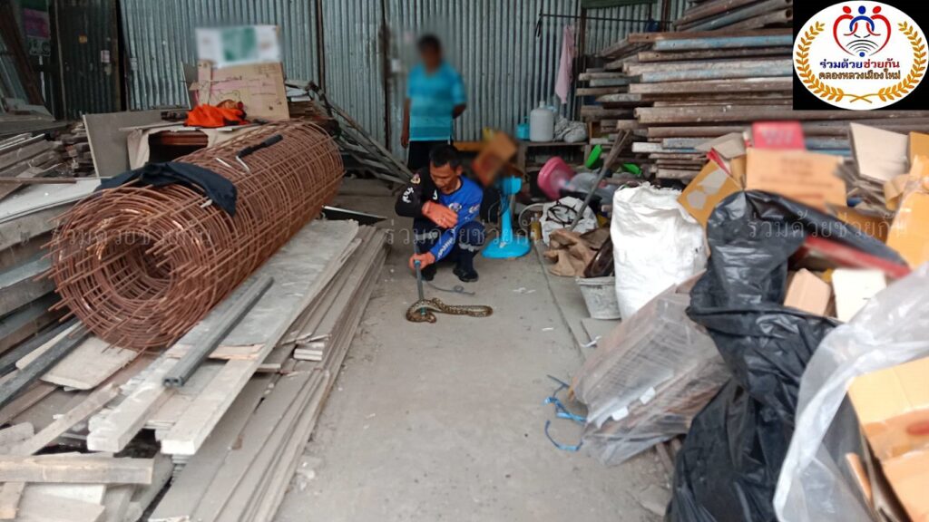 อาสาฯจับงูเหลือมบนคานห้องเก็บของ จ.ปทุมธานี
