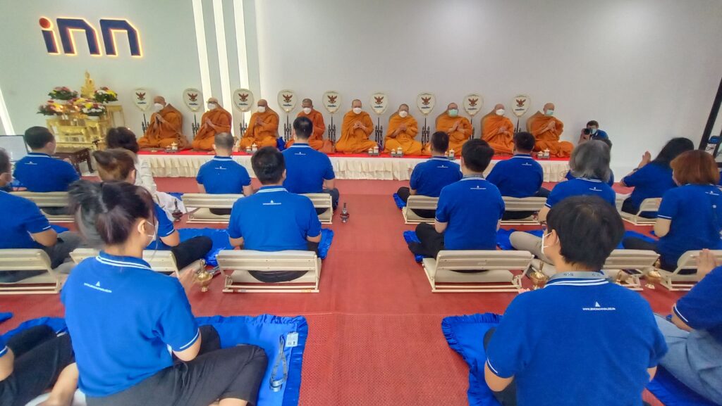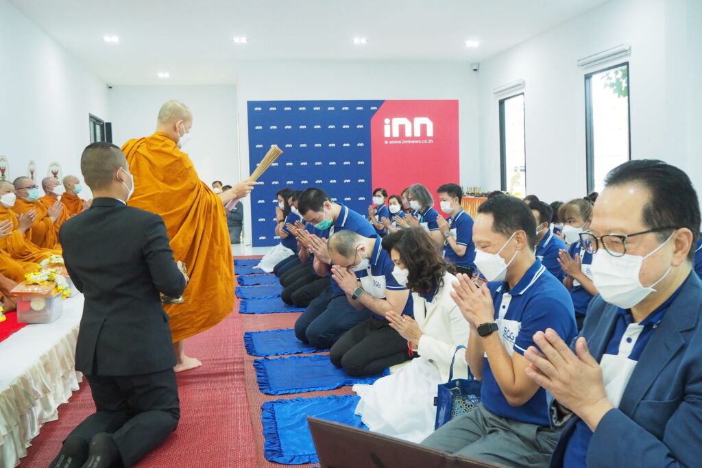 วันที่ 11 ม.ค.66 เวลา 09.49 น. คุณบุญชัย เบญจรงคกุล คุณวิชัย เบญจรงคกุล คุณจุฑามาศ เบญจรงคกุล ผู้บริหารบริษัทสำนักข่าว ไอ.เอ็น.เอ็น จำกัด และมูลนิธิร่วมด้วยช่วยกันสำนึกรักบ้านเกิด พร้อมคณะผู้บริหาร พนักงาน ร่วมพิธีสักการะศาลพระพรหม และพิธีเจริญพระพุทธมนต์ โดยพระสงฆ์ 9 รูป จากวัดพระราม 9 กาญจนาภิเษก ผู้บริหารถวายภัตตาหาร สังฆทาน และเครื่องจตุปัจจัยไทยธรรม พระสงฆ์ประทานเทศน์และให้พร กรวดน้ำรับพร ประพรมน้ำพระพุทธมนต์ เพื่อเป็นสิริมงคลแก่พนักงาน ณ บริเวณอาคารสำนักข่าว ไอ.เอ็น.เอ็น. ซอยรามคำแหง 21 กรุงเทพมหานคร