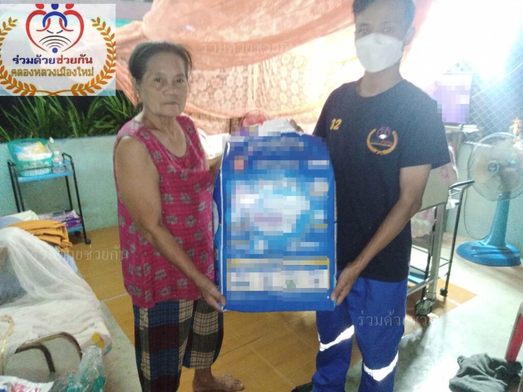 อาสาร่วมด้วยฐานคลองหลวงเมืองใหม่ ได้ดำเนินการนำผ้าอ้อมผู้ใหญ่จำนวน 2 แพ็คใหญ่ พร้อมน้ำเกลือล้างแผล และสำลีจำนวนหนึ่ง ไปมอบให้กับญาติผู้ป่วยเพื่อช่วยเหลือผู้ป่วยติดเตียงในเบื้องต้น พื้นที่สภ.สวนพริกไทย