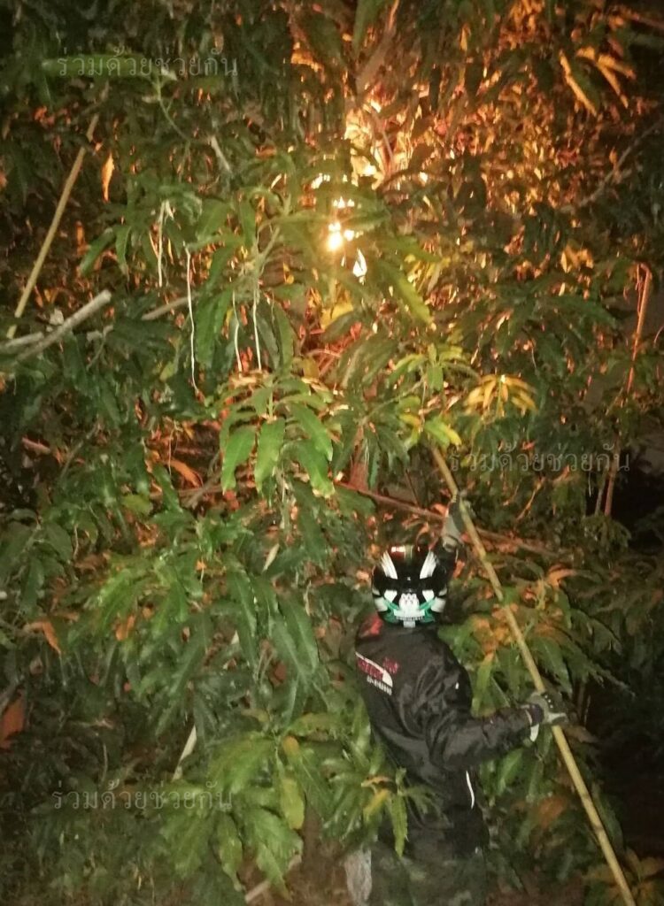 ศูนย์สื่อสารร่วมด้วยช่วยกัน ประสานอาสาร่วมด้วยคุ้มภัย 006,032 เข้าตรวจสอบพบเป็นรังผึ้งจำนวน 1 รัง ทำรังอยู่บนต้นไม้ความสูงประมาณ 3 เมตร ใกล้ที่พักอาศัย จึงได้นำอุปกรณ์เข้าช่วยเหลือ ทำการกำจัดรมควันและเคลื่อนย้ายนำออกนอกพื้นที่ให้เป็นที่เรียบร้อย เพื่อความปลอดภัยของผู้พักอาศัย