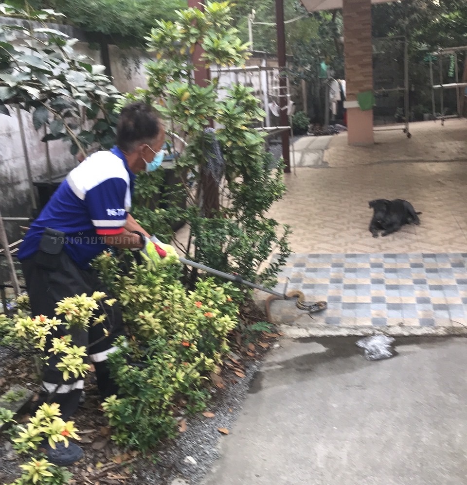 อาสาร่วมด้วยฐานโพธิ์ทอง รับแจ้งจากประชาชนขอความช่วยเหลือ มีงูเลื้อยเข้ามาภายในบ้านพัก ซอยพุทธบูชา 36 แขวงบางมด เขตทุ่งครุ กรุงเทพฯ