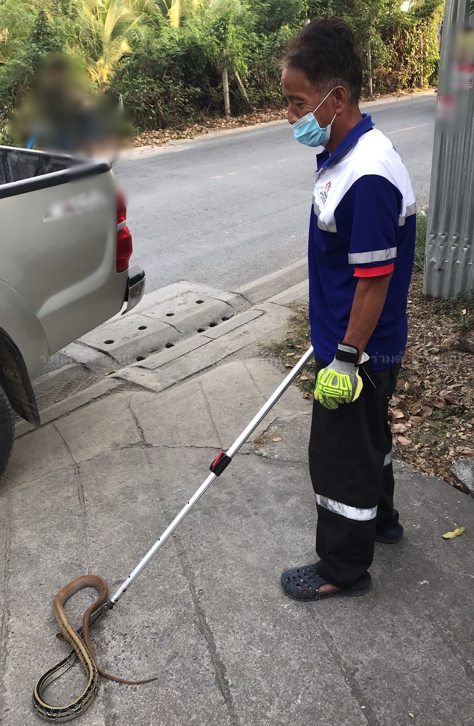 ตรวจสอบพบเป็นงูทางมะพร้าว เลื้อยเข้าไปซุกตัวอยู่ภายในบ้าน ความยาวประมาณ 1.5 เมตร จึงนำอุปกรณ์คล้องจับไว้ได้ ก่อนนำไปปล่อยคืนสู่ธรรมชาติต่อไป