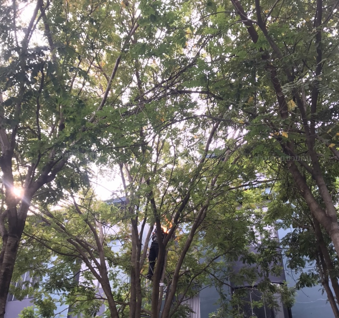 คุณอาทิตยา ขอความช่วยเหลือ มีผึ้งทำรังบนต้นไม้บริเวณห้องพัก ใกล้ซอยอรุณอัมรินทร์ 18 แขวงศิริราช เขตบางกอกน้อย กรุงเทพฯ หากปล่อยไว้เกรงจะเป็นอันตราย ศูนย์สื่อสารร่วมด้วยช่วยกัน ประสาน อาสาร่วมด้วยฐานเรวดี เข้าไปช่วยกำจัด พร้อมชุดป้องกันผึ้งต่อย