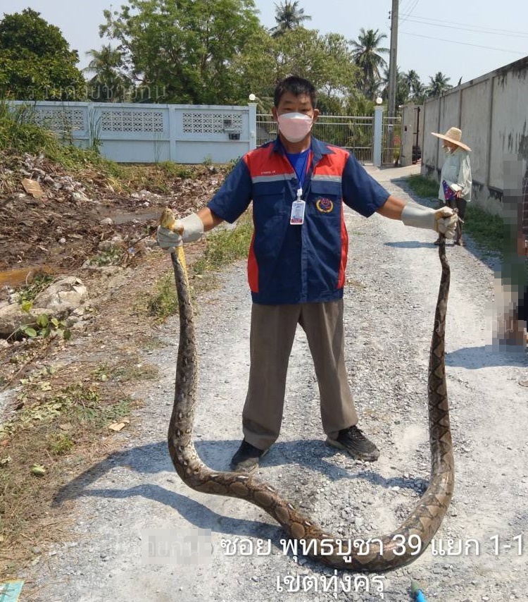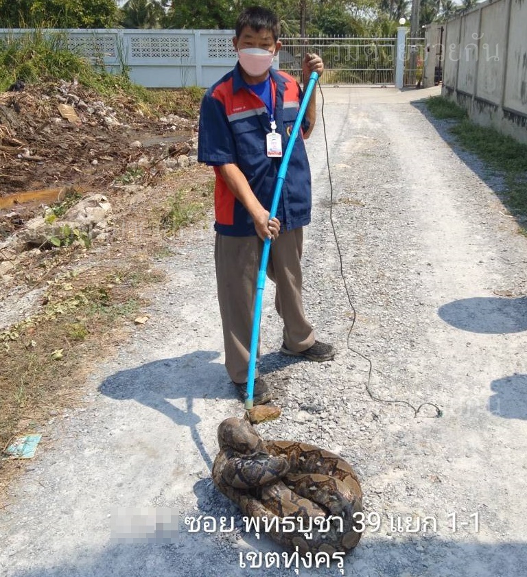 ประชาชนขอความช่วยเหลือให้ช่วยจับงูเหลือมขนาดใหญ่ความยาว 4 เมตร ภายในซอยพุทธบูชา 39 อาสาร่วมด้วยเร่งช่วยจับให้เป็นที่เรียบร้อย
