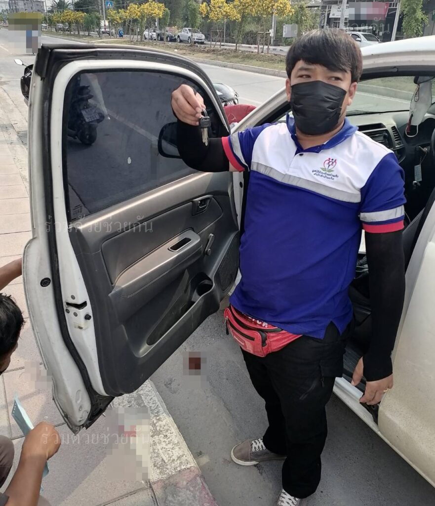 แจ้งศูนย์สื่อสารร่วมด้วยช่วยกัน ประสานอาสาร่วมด้วยคุ้มภัย 006,032 เข้าช่วยเหลือ โดยใช้อุปกรณ์เฉพาะทางทำการปลดล็อกเปิดประตูรถได้เป็นผลสำเร็จ และนำกุญแจออกมาส่งคืนให้กับเจ้าของเป็นที่เรียบร้อย