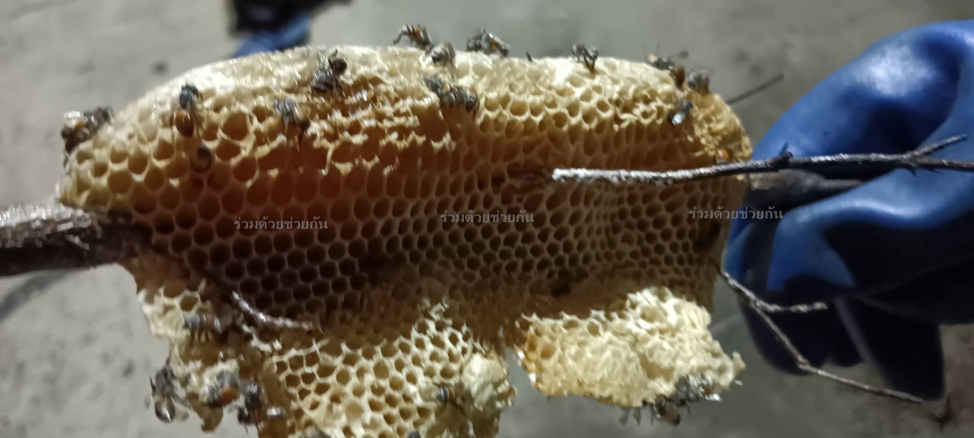 คุณตุ๊ก ขอความช่วยเหลือ มีผึ้งทำรังบนต้นไม้ข้างกำแพงบ้าน ซอยพุทธบูชา 36 แขวงบางมด เขตทุ่งครุ กรุงเทพฯ เกรงจะเป็นอันตราย ศูนย์สื่อสารร่วมด้วยช่วยกัน ประสาน อาสาร่วมด้วยช่วยกัน เข้าไปช่วยกำจัด