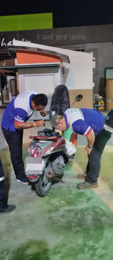 ตรวจสอบพบรถจักรยานยนต์ ยามาฮ่า สีแดงเทา จอดเสียฟิวส์ขาด อาสานำอุปกรณ์เข้าดำเนินการช่วยเหลือเปลี่ยนฟิวส์ให้เป็นที่เรียบร้อย สามารถขับขี่ต่อไปได้