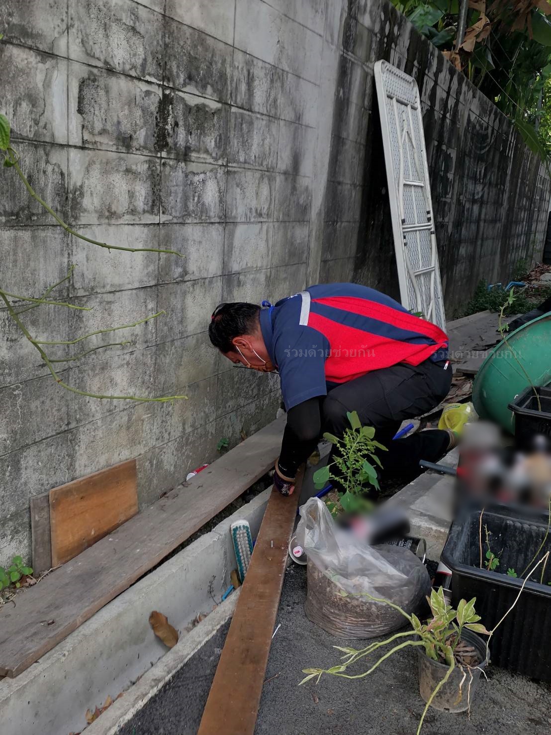 อาสาร่วมด้วยฐานคุ้มภัย รับแจ้งจากประชาชนขอความช่วยเหลือ มีงูซุกข้างกำแพงบ้าน ซอยรามอินทรา 77 แขวงรามอินทรา เขตคันนายาว กรุงเทพฯ จึงเดินทางเข้าไปช่วยจับ