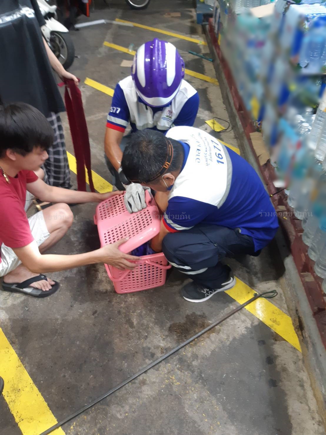 ตรวจสอบพบว่าแมวเข้าไปหลบอยู่ใต้พาเลทวางสินค้า ส่งเสียงร้องตลอดเวลา จึงช่วยกันนำอุปกรณ์คล้องจับออกมาได้สำเร็จและปลอดภัย ก่อนจับใส่ตะกร้าให้เจ้าของนำกลับบ้าน ต่อไป