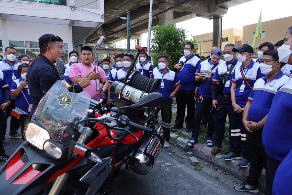 ในการอบรมมี นายภุชพงศ์ สัญญาโชติ หัวหน้าสถานีดับเพลิงและกู้ภัยลาดยาว มาบรรยายพิเศษแลกเปลี่ยนประสบการณ์ภารกิจการช่วยเหลือแผ่นดินไหวประเทศตุรกี และนายจักรกฤษณ์ คงคำ เจ้าพนักงานป้องกันและบรรเทาสาธารณภัยชำนาญการ สถานีดับเพลิงและกู้ภัยสุทธิสาร มาเป็นวิทยากรบรรยายการสร้างภาคีเครือข่ายและการสื่อสาร ณ จุดเกิดเหตุการเผชิญเหตุเบื้องต้น และการเข้าใจในการใช้อุปกรณ์ความปลอดภัยส่วนบุคคลขั้นพื้นฐาน พร้อมทั้งนำผู้เข้าอบรมศึกษาดูงานที่สถานีดับเพลิงและกู้ภัยพญาไท และมอบใบประกาศเกียรติบัตรให้ผู้ผ่านการอบรมทุกคน