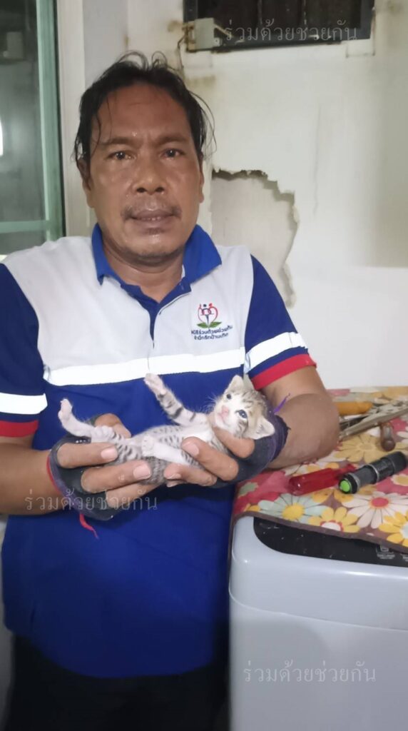 อาสาร่วมด้วยได้เจาะและตัดผนังกำแพงบ้าน ช่วยเหลือเจ้าเหมียวน้อย