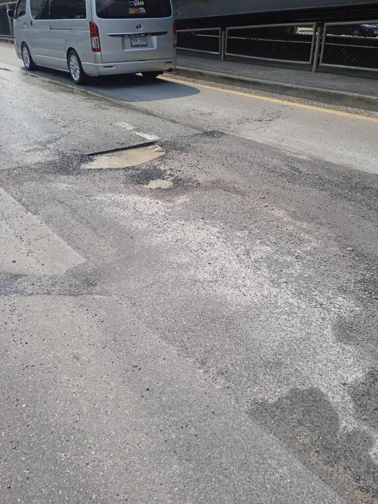 เตือนระวัง!! ถนนชำรุดเป็นหลุม บริเวณสะพานข้ามแยกประชานุกูล ถนนรัชดาภิเษก เขตจตุจักร กรุงเทพฯ