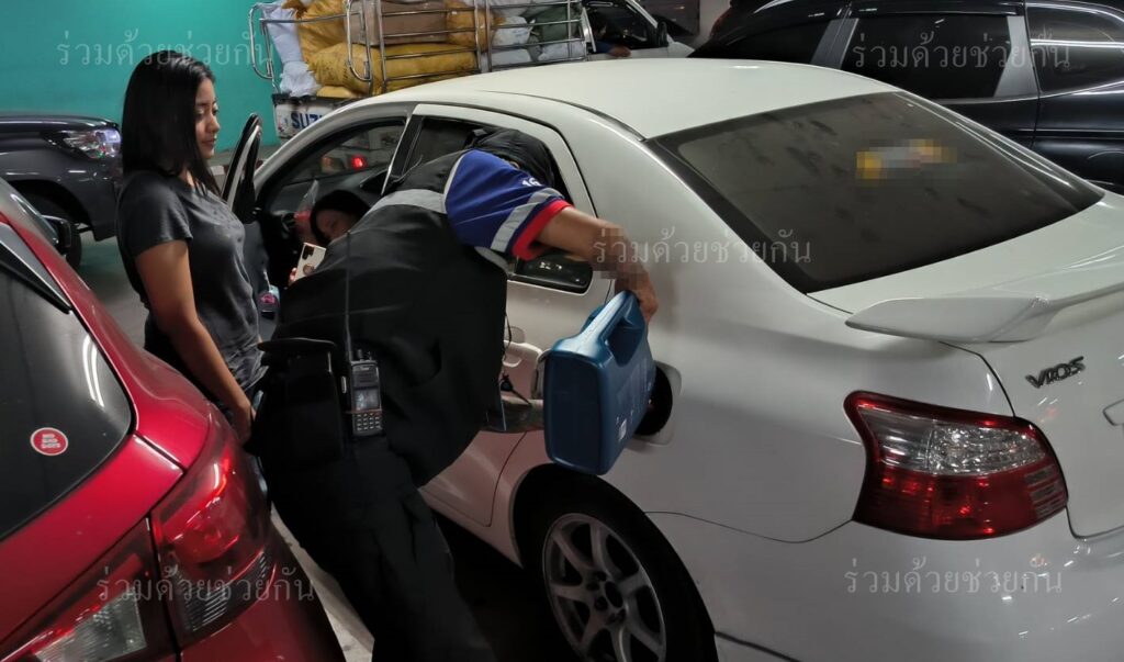 คุณรอนีย์ แจ้งผ่านสายด่วน 1677 ขอความช่วยเหลือรถน้ำมันหมด ใช้น้ำมันแก๊สโซฮอล์ E20 เป็นรถยนต์โตโยต้า วีออส สีขาว จอดอยู่ภายในห้างย่านถนนเพชรบุรี เขตราชเทวี กรุงเทพฯ