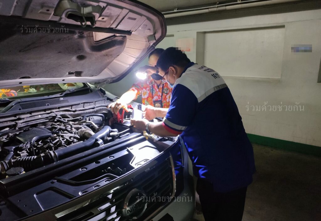 อาสาร่วมด้วยอิสระ 10 ได้นำอุปกรณ์เข้าช่วยเหลือ ทำการพ่วงแบตเตอรี่รถให้ รถสตาร์ทเครื่องยนต์ติด ขับเคลื่อนต่อไปได้ตามปกติ พื้นที่สน.ทองหล่อ
