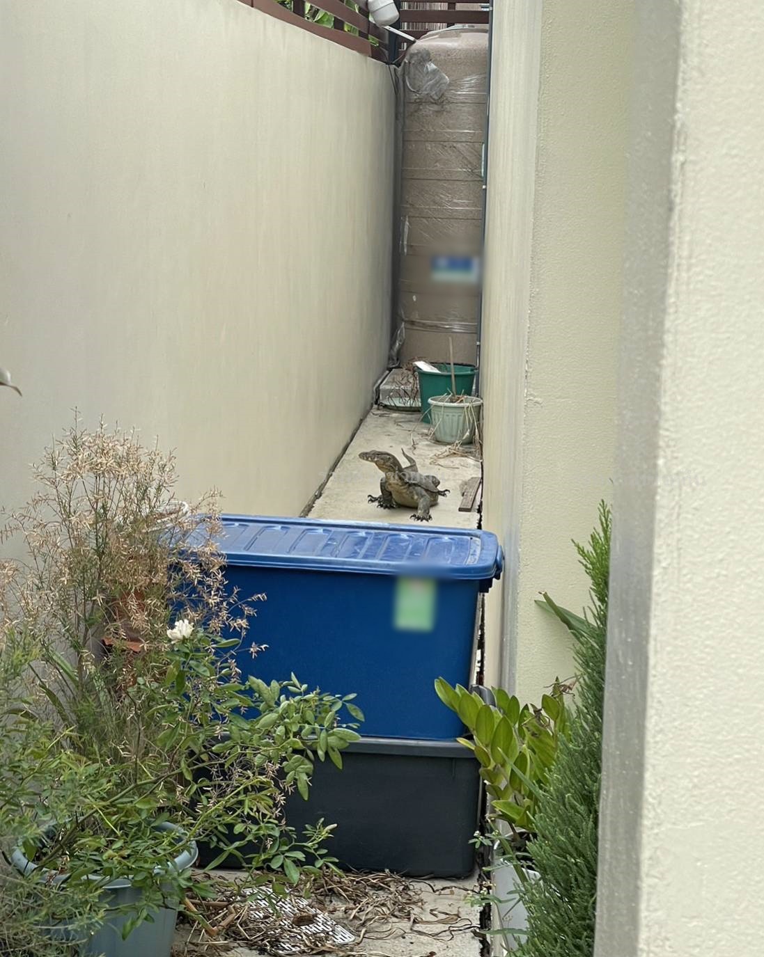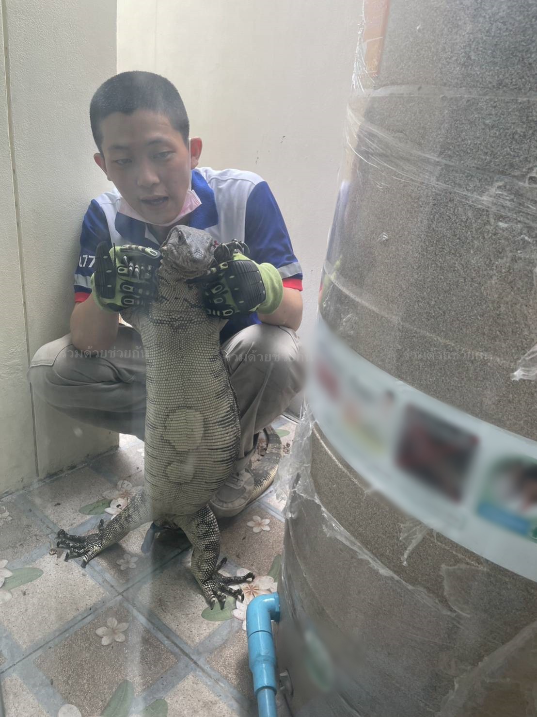 เจ้าของบ้านตกใจ ตัวเงินตัวทองซุกข้างแท็งก์น้ำ แจ้งอาสาช่วยจับ