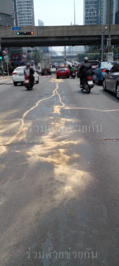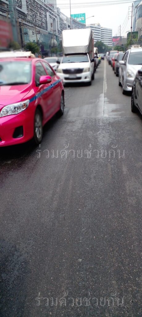 อาสาร่วมด้วยช่วยกัน แจ้งเตือน มีคราบน้ำมันรั่วไหล แยกพระราม 9 ถนนรัชดาภิเษก ขาเข้า