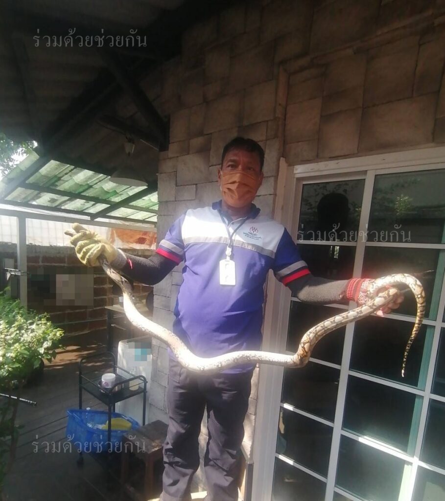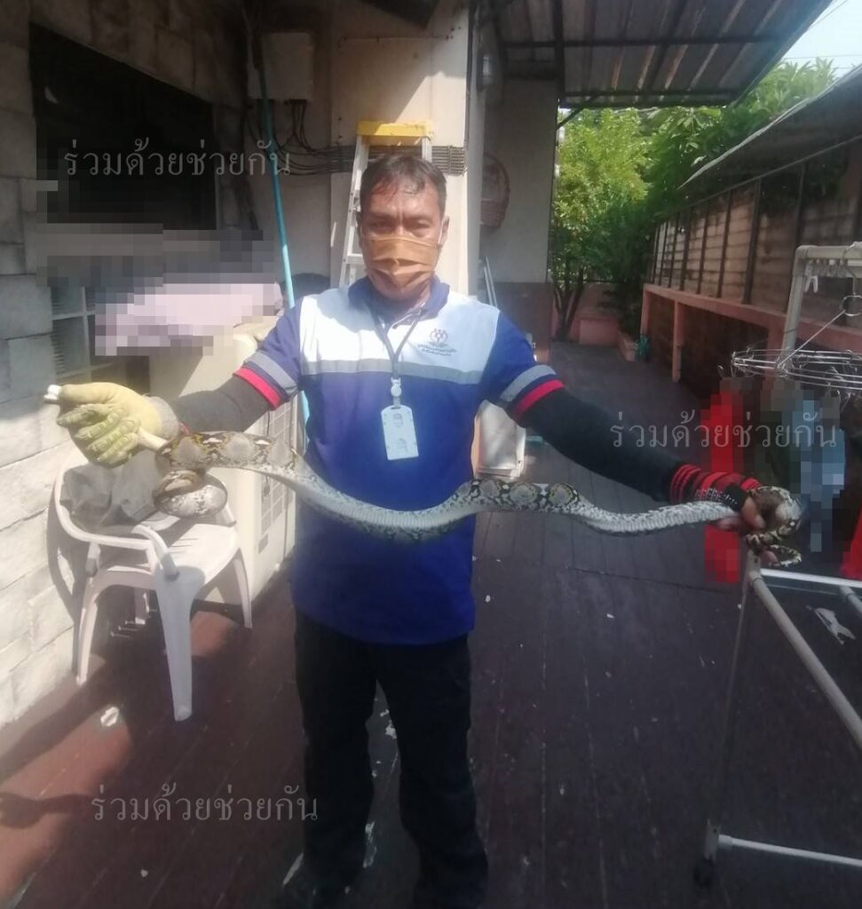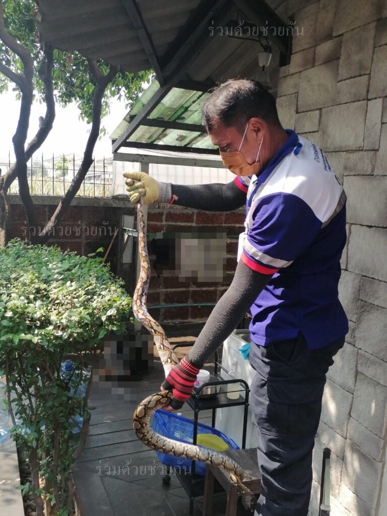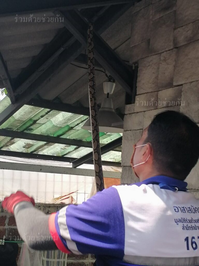 อาสาร่วมด้วยได้นำอุปกรณ์เข้าช่วยเหลือ ทำการปีนขึ้นไปจับดึงตัวงูลงมาได้เป็นผลสำเร็จ และนำไปปล่อยคืนสู่ธรรมชาติเป็นที่เรียบร้อย พื้นที่สน.บางชัน