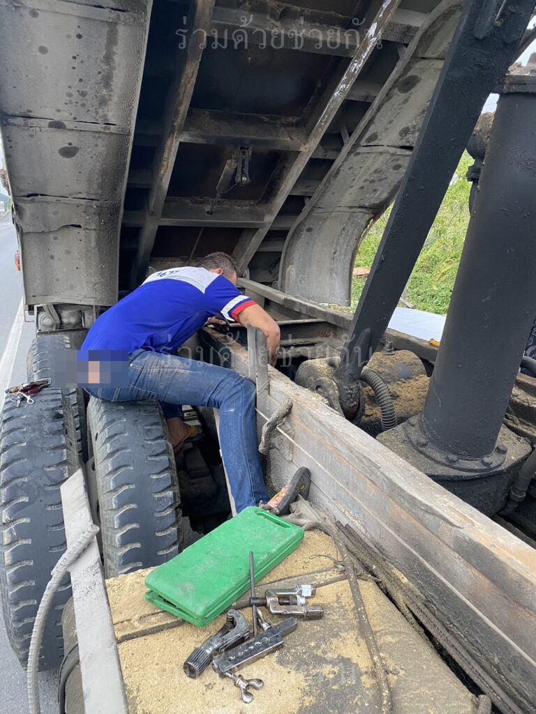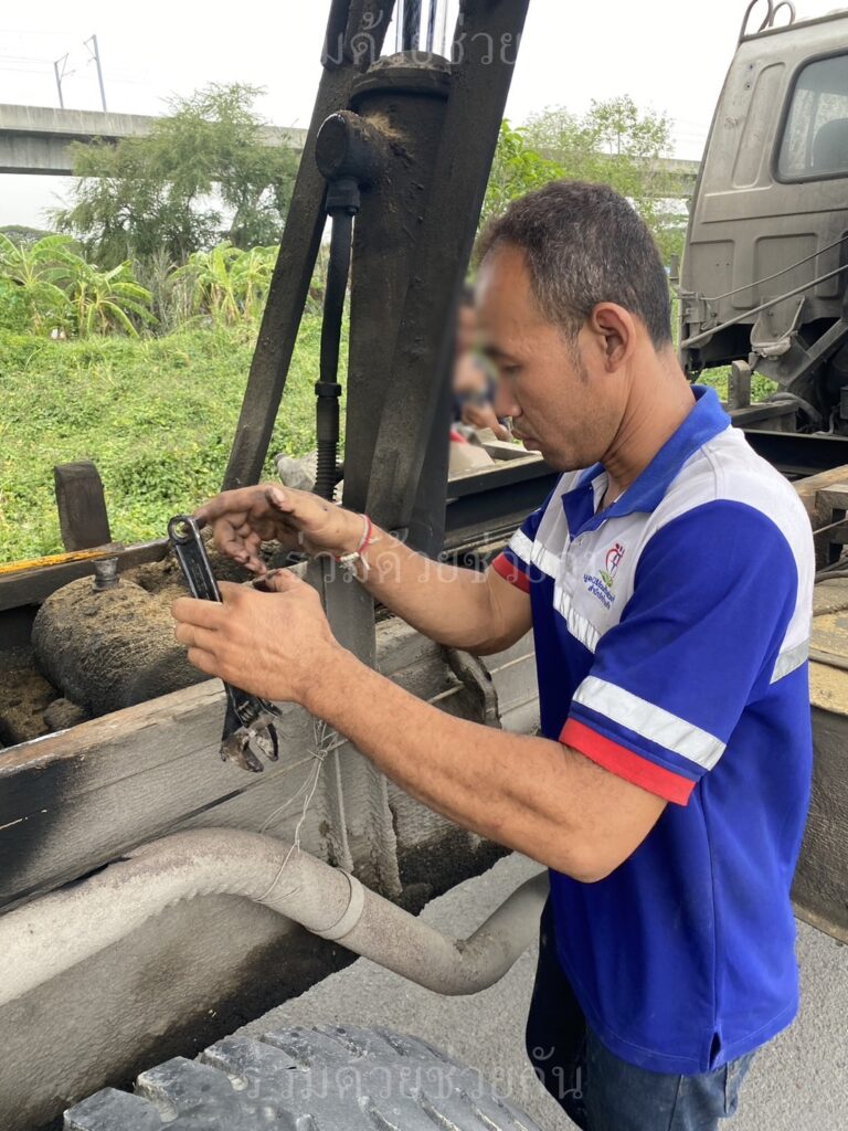 อาสาร่วมด้วยเฉลิมพระเกียรติ 15 , 23 ช่วยเหลือประชาชนรถบรรทุกสิบล้อ อีซูซุ สีขาว จอดเสียเบรคขัดข้อง บริเวณสถานีรถไฟฟ้าแอร์พอร์ตเรลลิงก์บ้านทับช้าง ถนนคู่ขนานมอเตอร์เวย์ อาสาร่วมด้วยฯ ดำเนินการใช้อุปกรณ์ซ่อมแซมเรียบร้อยแล้ว สามารถขับขี่ต่อไปได้