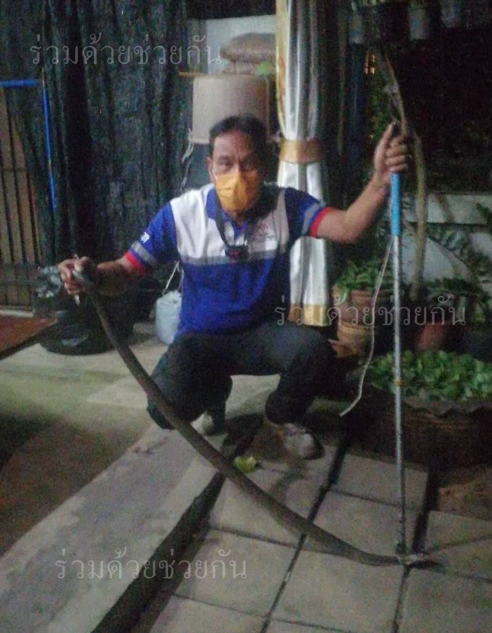 อาสาร่วมด้วยคุ้มภัย 006 ได้เข้าตรวจสอบพบเป็นงูเห่าจำนวน 1 ตัว ความยาว 1 เมตรครึ่ง หลบซ่อนตัวอยู่ข้างกระถางต้นไม้ข้างบ้านพัก จึงได้นำอุปกรณ์เข้าช่วยเหลือ ทำการคล้องจับตัวงูเอาไว้ได้เป็นผลสำเร็จ พร้อมนำใส่กระสอบ และนำไปปล่อยคืนสู่ธรรมชาติห่างไกลบ้านเรือนประชาชนต่อไป พื้นที่สน.คันนายาว
