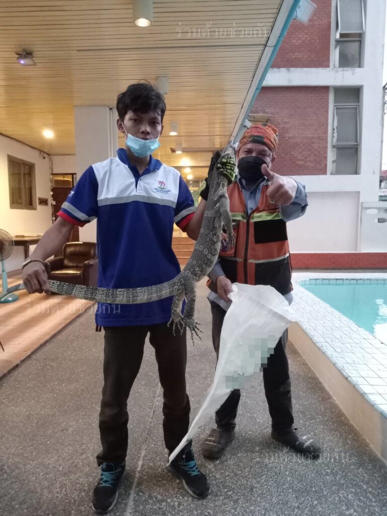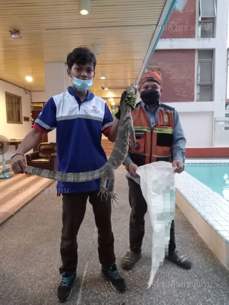 ศูนย์สื่อสารร่วมด้วยช่วยกัน ประสานอาสาร่วมด้วยมิตรภาพ 032,ฉก.ทองหล่อ 88,ไผ่สิงห์โต 07 เข้าช่วยเหลือ พบเป็นตัวเงินตัวทองขนาด 1 เมตร จำนวน 1 ตัว หลบซ่อนตัวอยู่ในห้องเก็บของภายในที่พักอาศัย จึงใช้อุปกรณ์เข้าทำการจับตัวเอาไว้ได้เป็นผลสำเร็จ พร้อมนำใส่กระสอบ และนำไปปล่อยคืนสู่ธรรมชาติเป็นที่เรียบร้อย