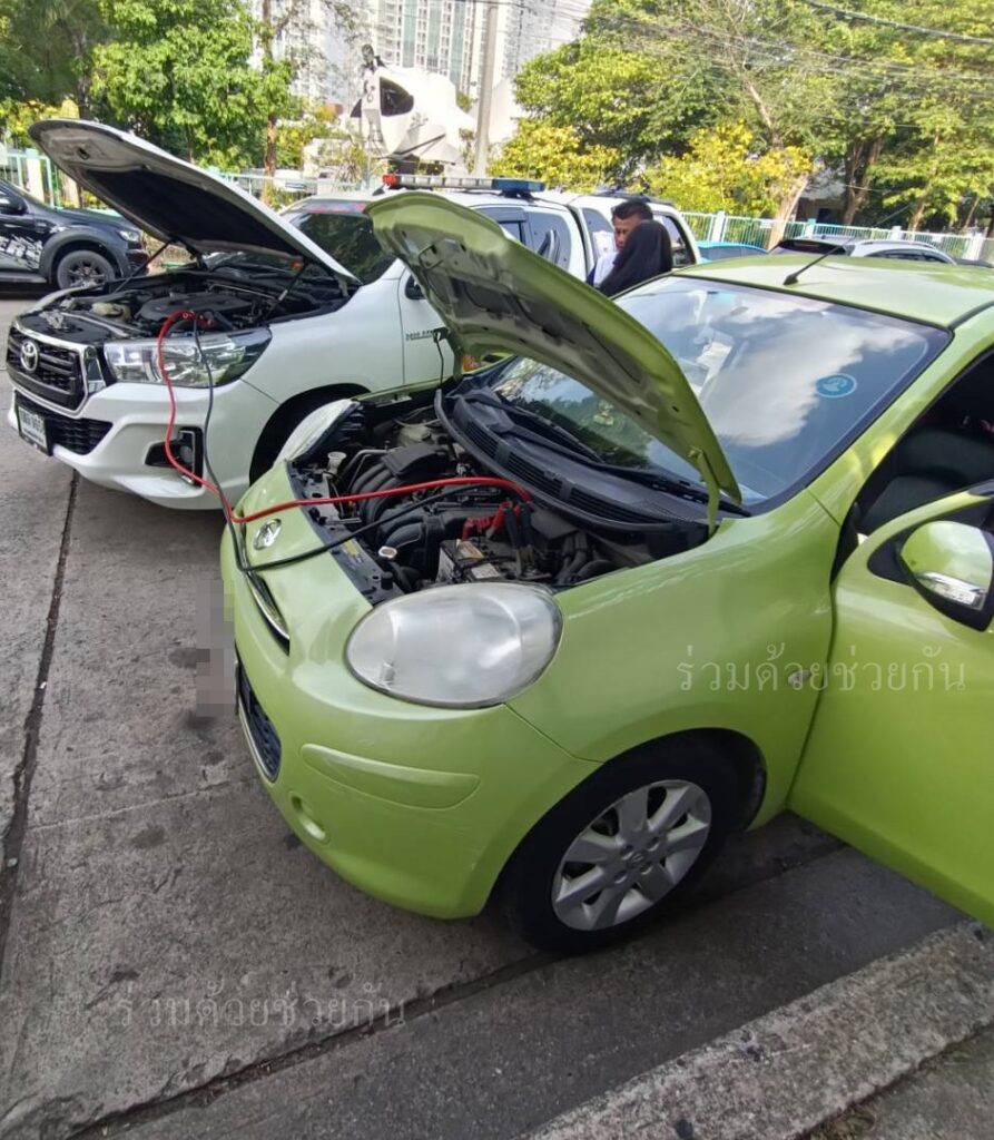 อาสาร่วมด้วยช่วยกัน รับแจ้งจากประชาชนขอความช่วยเหลือรถจอดเสีย แบตเตอรี่หมด เป็นรถยนต์นิสสัน มาร์ช สีเขียว จอดอยู่ภายในลานจอดรถท้องฟ้าจำลองกรุงเทพ ถ.สุขุมวิท แขวงพระโขนง เขตคลองเตย กรุงเทพมหานคร