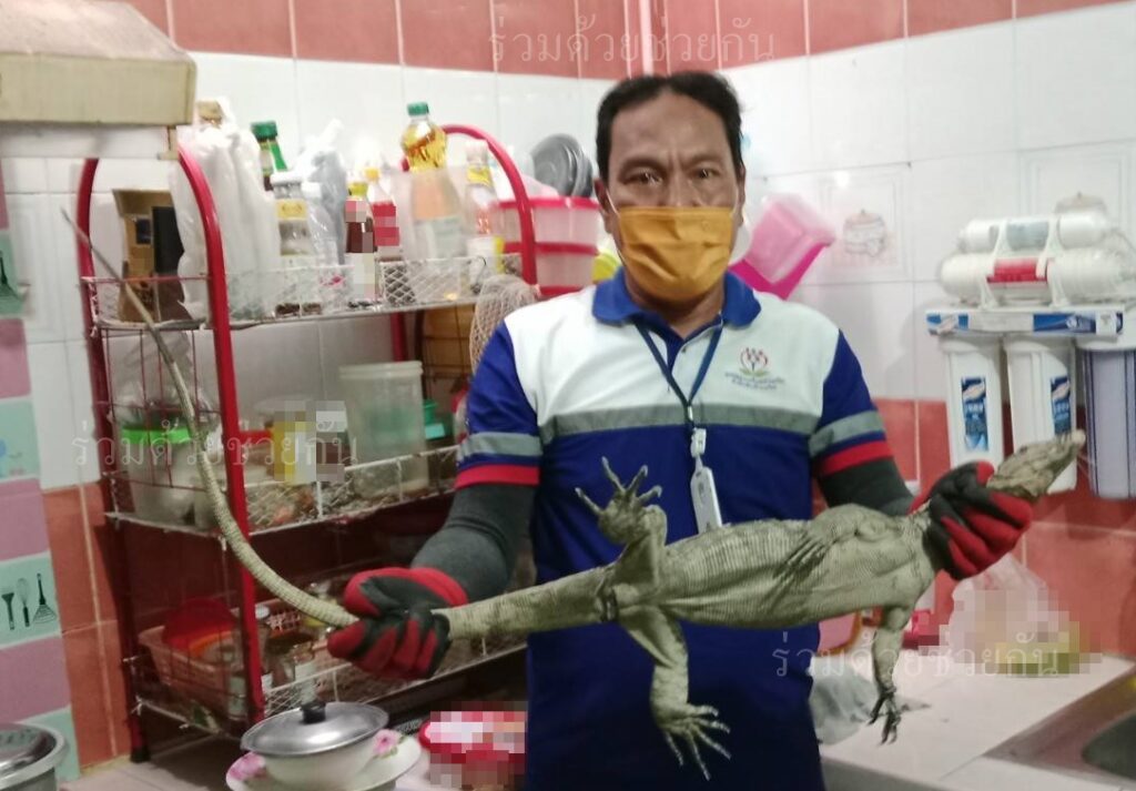 อาสาร่วมด้วยคุ้มภัย 006 ได้เข้าตรวจสอบพบเป็นตัวเงินตัวทองจำนวน 1 ตัว ความยาวประมาณ 1 เมตร หลบอยู่ในห้องครัวข้างบ้านพัก จึงได้นำอุปกรณ์เข้าช่วยเหลือ ทำการจับตัวเอาไว้ได้เป็นผลสำเร็จ พร้อมนำใส่ถุงกระสอบ และนำไปปล่อยคืนสู่ธรรมชาติเป็นที่เรียบร้อย พื้นที่สน.คันนายาว