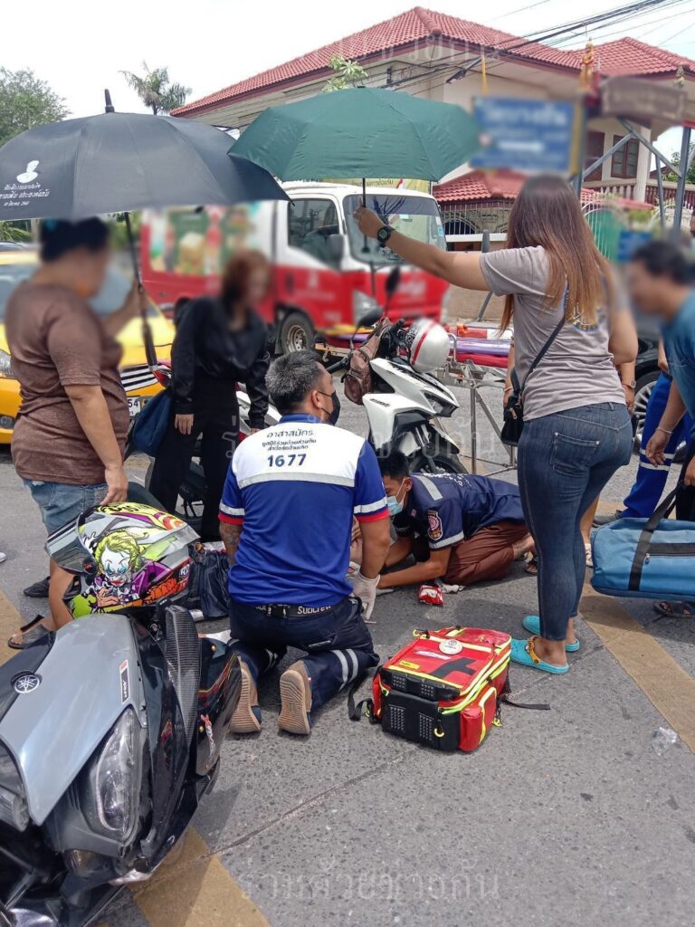 อาสาฯช่วยผู้บาดเจ็บ รถจยย.ชนกัน ถ.พระยาสุเรนทร์