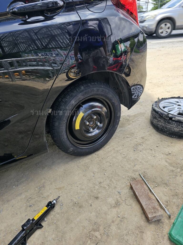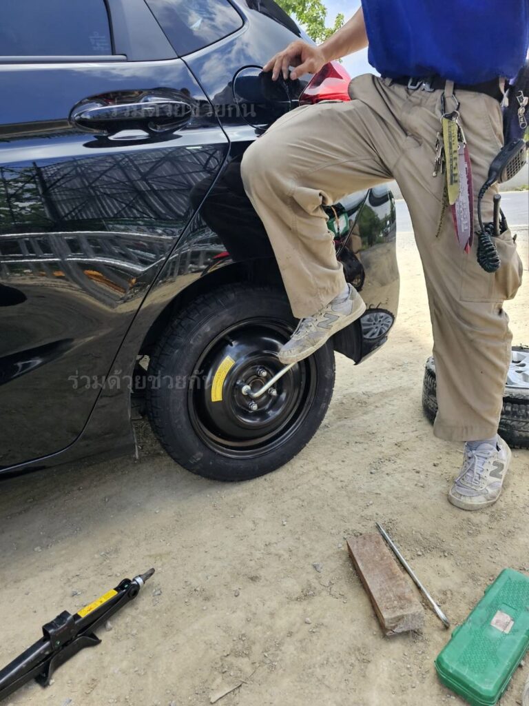 ศูนย์สื่อสารร่วมด้วยช่วยกัน ประสานอาสาร่วมด้วยเรวดี 45 เข้าตรวจสอบพบรถเก๋ง ฮอนด้าแจ๊ส สีดำ อาสานำอุปกรณ์เข้าช่วยเหลือเปลี่ยนล้อยางให้เป็นที่เรียบร้อย สามารถขับเคลื่อนต่อไปได้