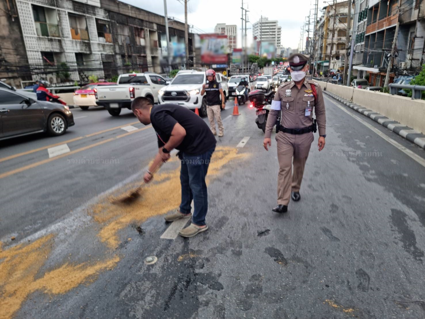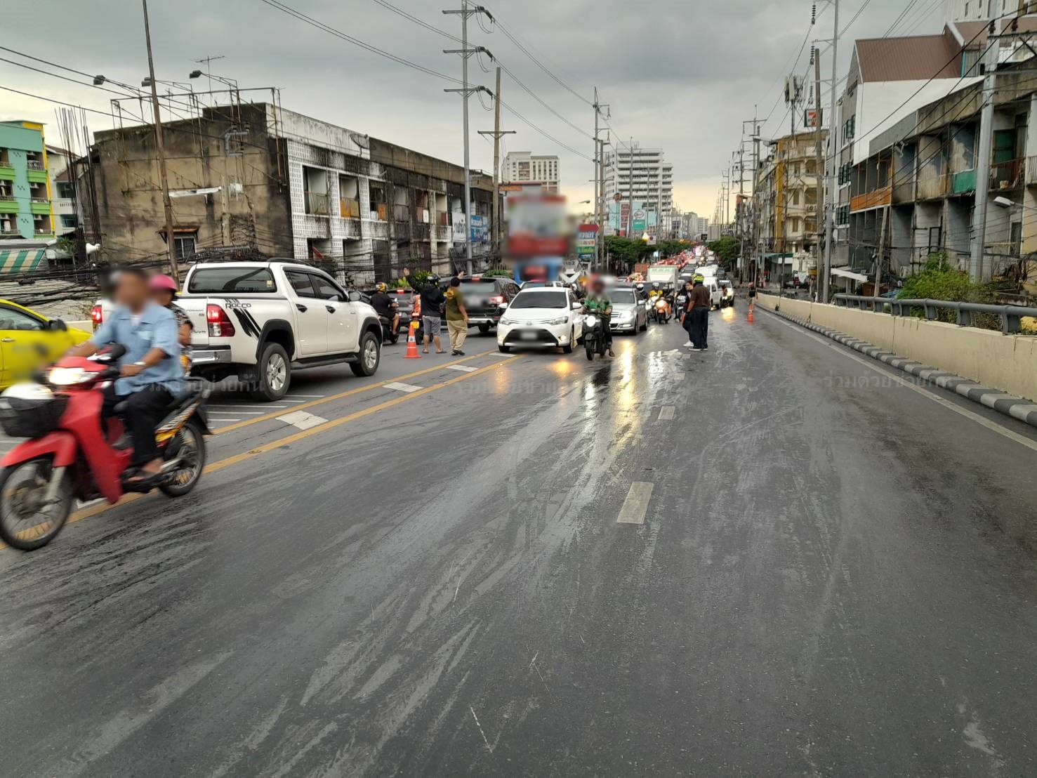 คราบน้ำมันหกบนถนน ทำรถล้มหลายคัน แจ้งจนท.เร่งทำความสะอาด