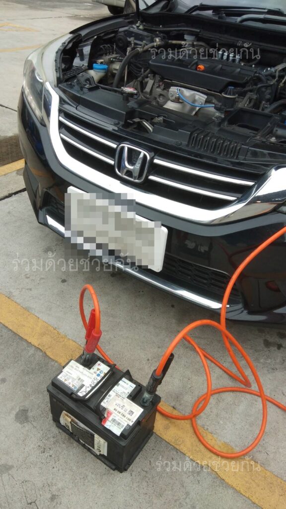อาสาร่วมด้วยช่วยกัน รับแจ้งจากประชาชนขอความช่วยเหลือรถจอดเสีย แบตเตอรี่หมด เป็นรถยนต์ฮอนด้า แอคคอร์ด สีดำ จอดอยู่ภายในซอยสุขุมวิท 36 แขวงพระโขนง เขตคลองเตย กรุงเทพฯ
