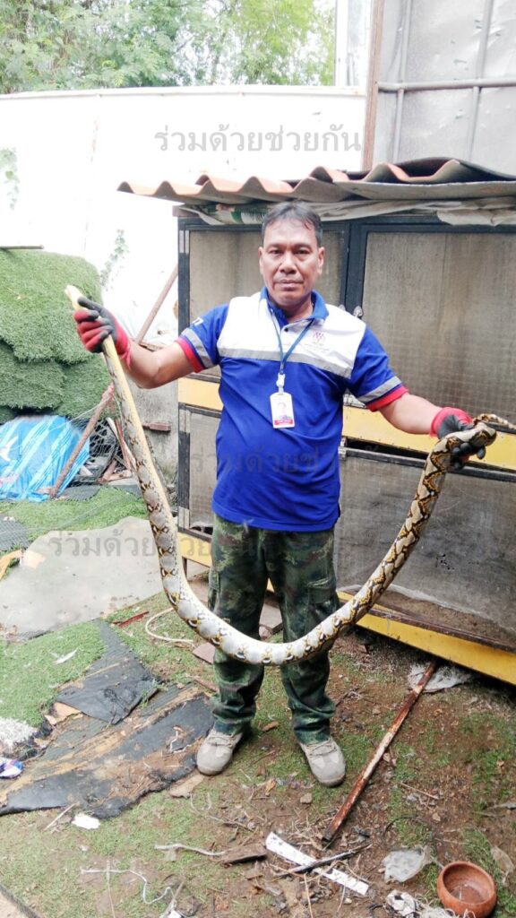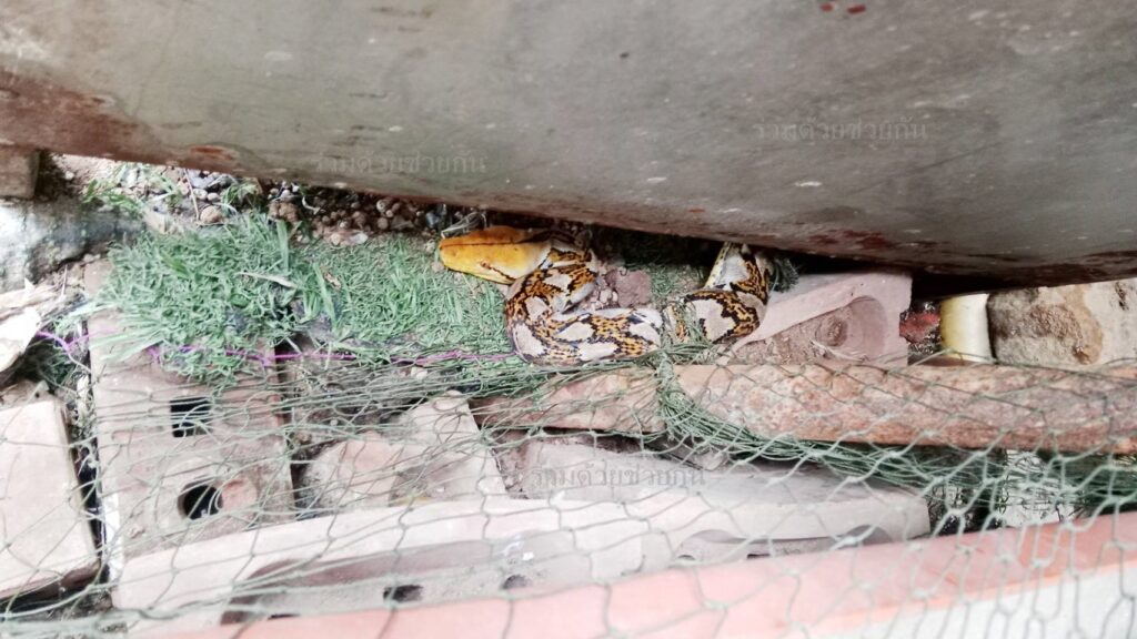 งูเหลือมติดตาข่ายซอยคู้บอน 27 อาสาช่วยเหลือออกมาได้สำเร็จ