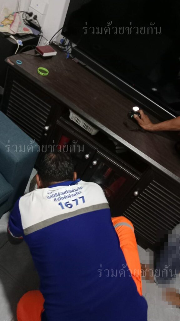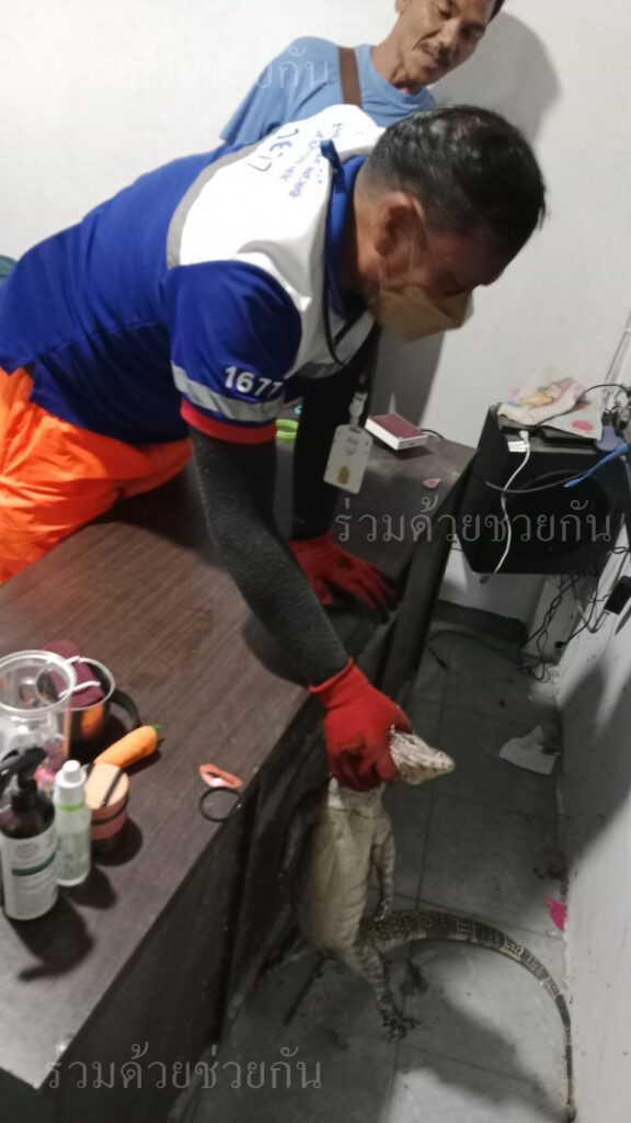 อาสาร่วมด้วยคุ้มภัย 006,032 ได้เข้าตรวจสอบพบเป็นตัวเงินตัวทองจำนวน 1 ตัว ความยาวประมาณ 1 เมตร หลบอยู่ใต้ชั้นวางโทรทัศน์ภายในที่พักอาศัย จึงได้นำอุปกรณ์เข้าช่วยเหลือ ใช้เวลาหลายนาที ทำการจับตัวนำออกมาได้เป็นผลสำเร็จ และนำไปปล่อยคืนสู่ธรรมชาติเป็นที่เรียบร้อย พื้นที่สน.บางชัน