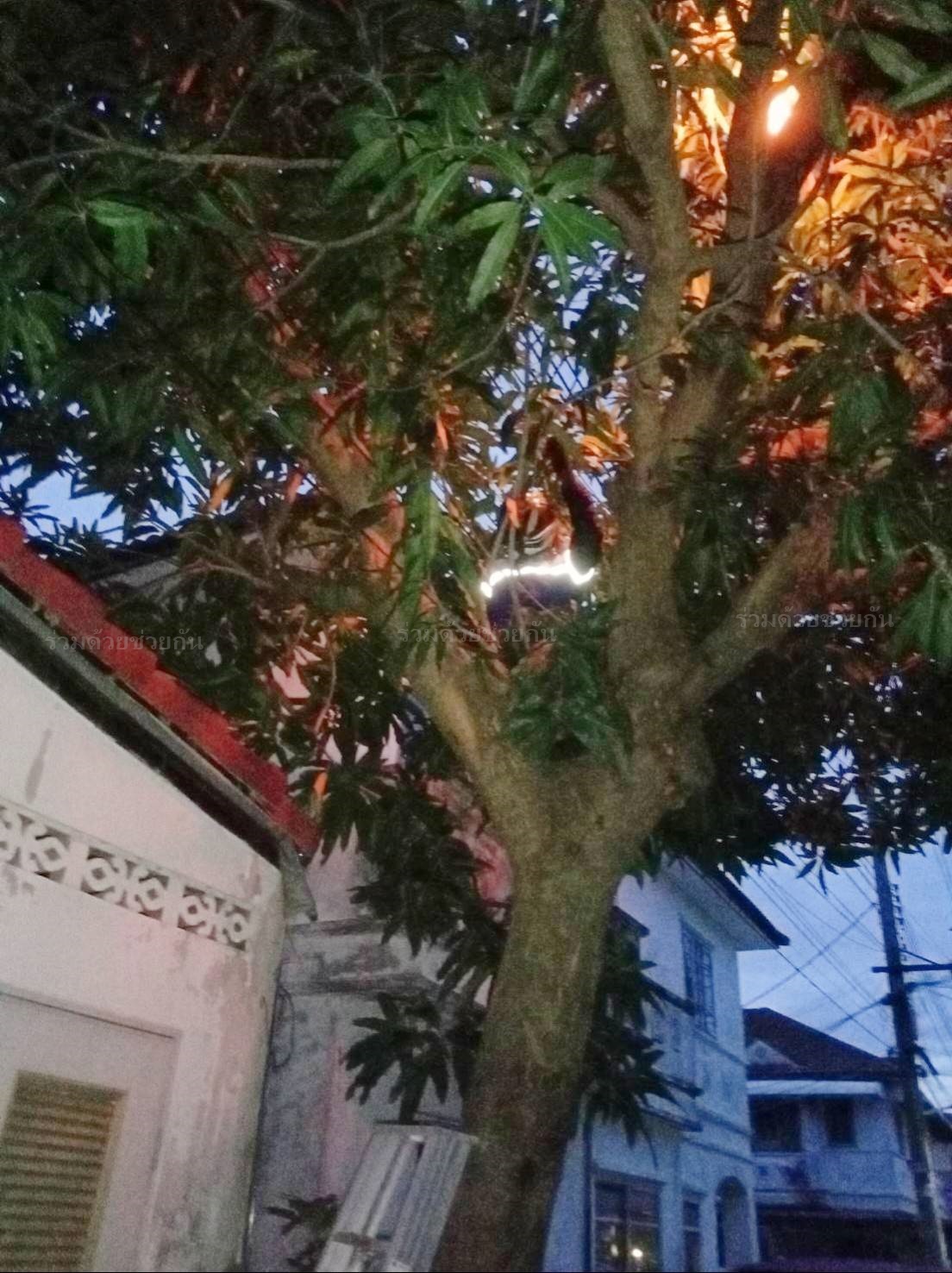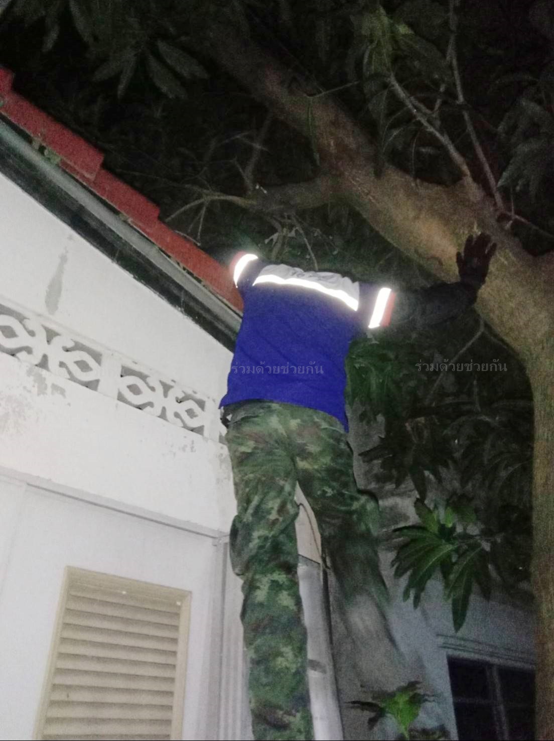 คุณคณิศร ขอความช่วยเหลือ มีผึ้งทำรังบนต้นไม้ที่บ้าน ซอยหทัยราษฎร์ 39 แขวงสามวาตะวันตก เขตคลองสามวา กรุงเทพฯ เกรงจะเกิดอันตราย ศูนย์สื่อสารร่วมด้วยช่วยกัน ประสาน อาสาร่วมด้วยฐานคุ้มภัย เข้าไปช่วยกำจัด