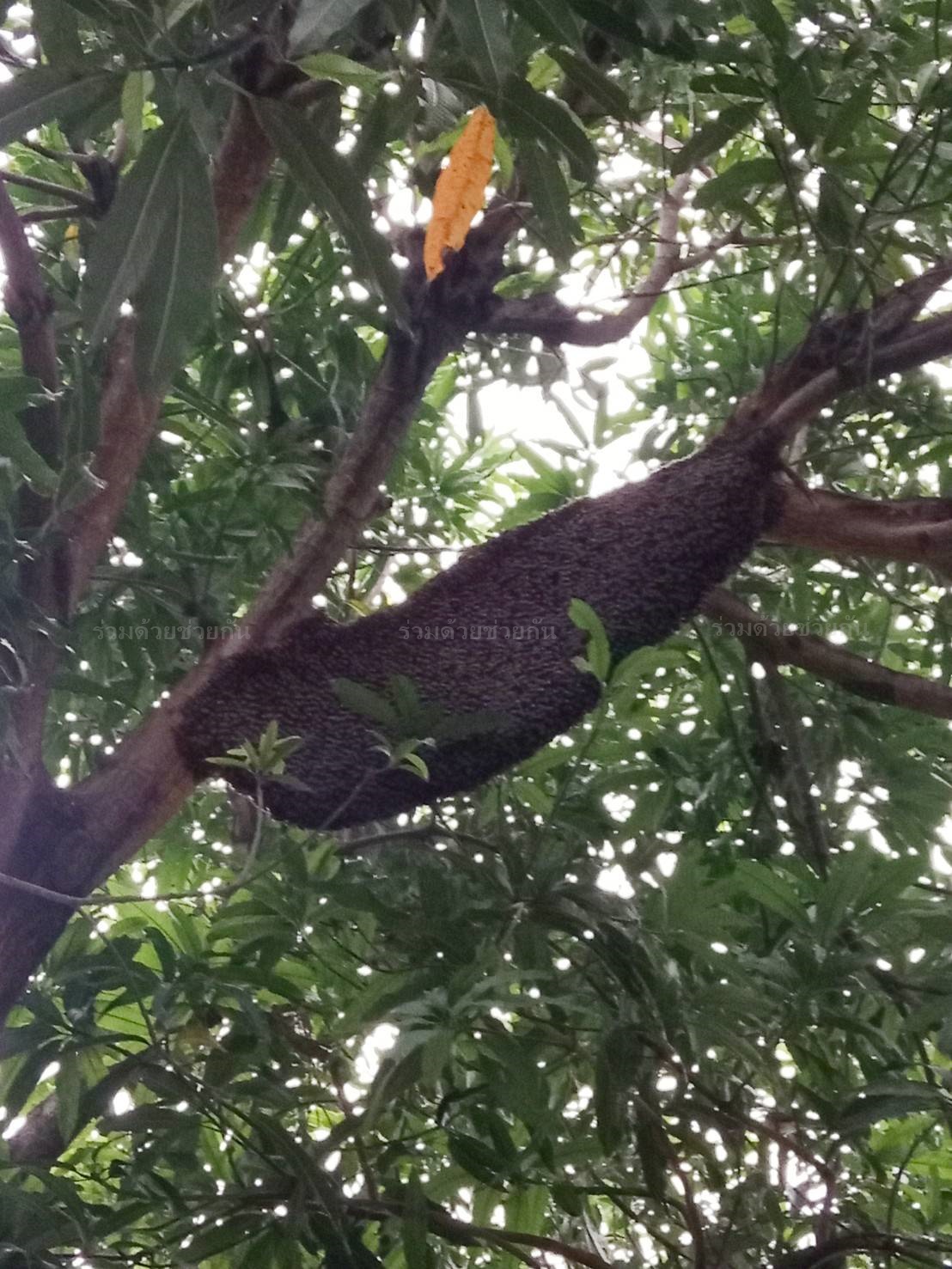 ปล่อยไว้ไม่ได้ ผึ้งทำรังบนต้นไม้ที่บ้าน ย่านคลองสามวา