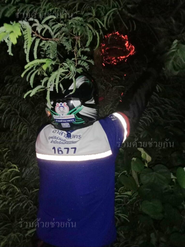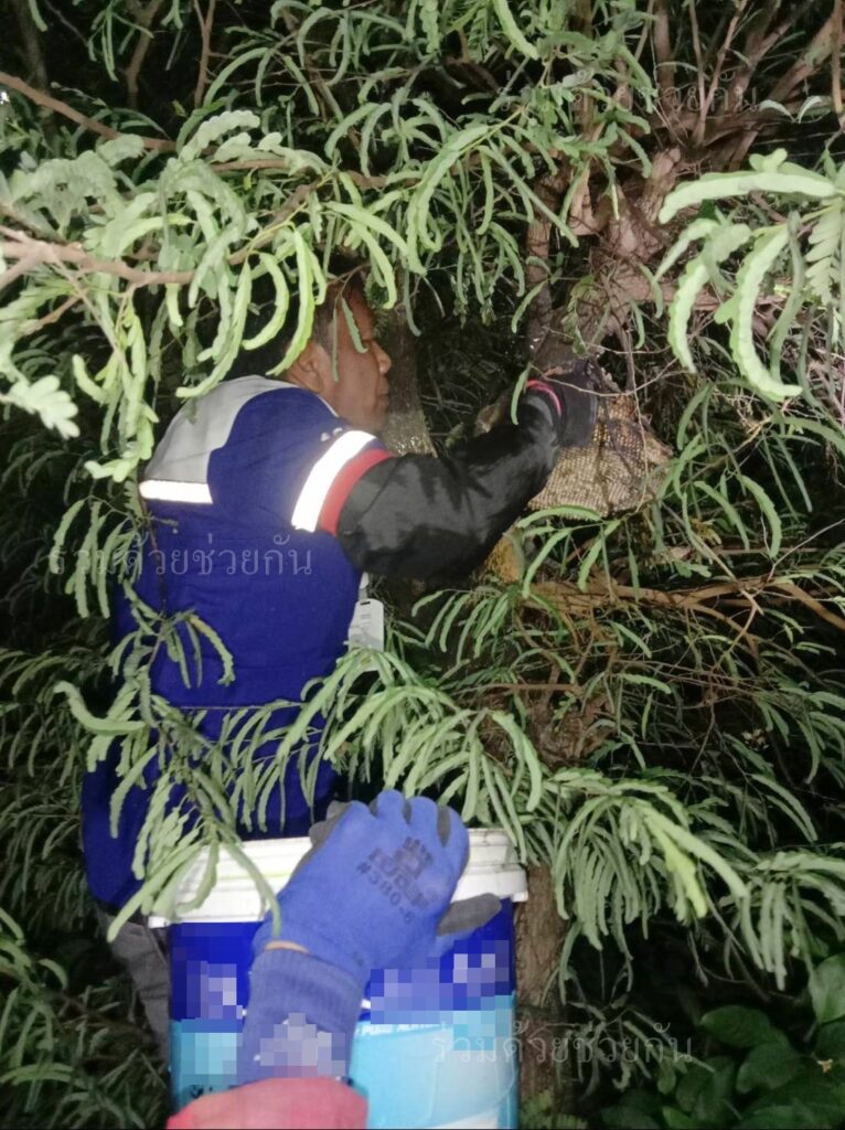 อาสาร่วมด้วยช่วยกัน รับแจ้งจากประชาชนขอความช่วยเหลือกำจัดสัตว์มีพิษ อยู่บนต้นไม้ ถนนพระยาสุเรนทร์ ซอย 1 เเยกถนนเลียบคลองหลังวัดบางชัน แขวงคันนายาว เขตคันนายาว กรุงเทพฯ เกรงว่าจะเป็นอันตรายกับผู้ที่เดินผ่านทาง