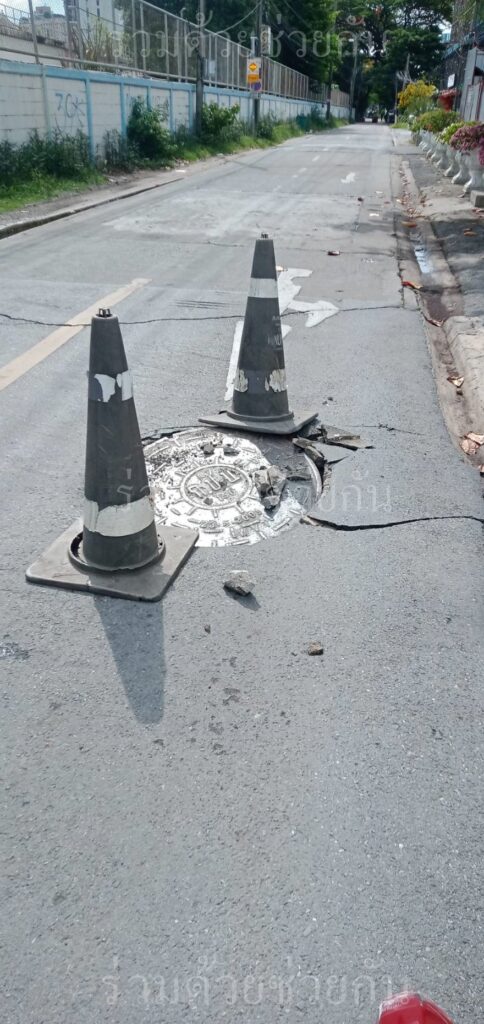 อาสาร่วมด้วยช่วยกัน แจ้งเตือนถนนชำรุดแตกหัก ปากซอยแสงจันทร์ ถนนสุขุมวิท 40