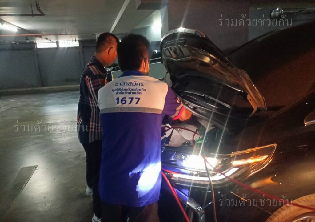 อาสาร่วมด้วยมิตรภาพ 011,032 ได้นำอุปกรณ์เข้าช่วยเหลือ ทำการพ่วงแบตเตอรี่รถให้ รถสตาร์ทเครื่องยนต์ติด ขับเคลื่อนต่อไปได้ พื้นที่สน.ทองหล่อ