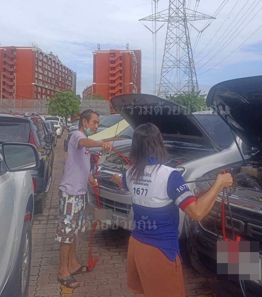 อาสาร่วมด้วยฯ ช่วยรถกระบะแบตเตอรี่หมด ลานจอดรถคอนโด พัฒนาการไลฟ์คอมเพล็กซ์ ซอยพัฒนาการ 25 เขตสวนหลวง กรุงเทพฯ