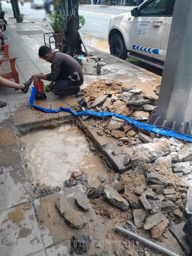 อาสาร่วมด้วยช่วยกัน แจ้งท่อประปาแตกรั่ว ระหว่างซอยปรีดีพนมยงค์ 41 – 43 ถนนสุขุมวิท 71
