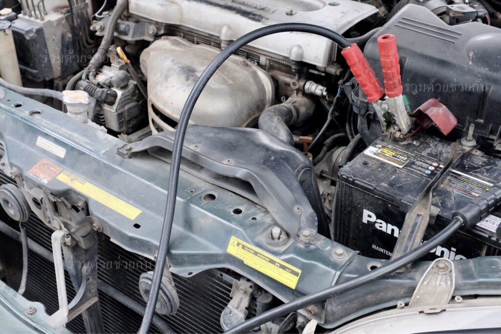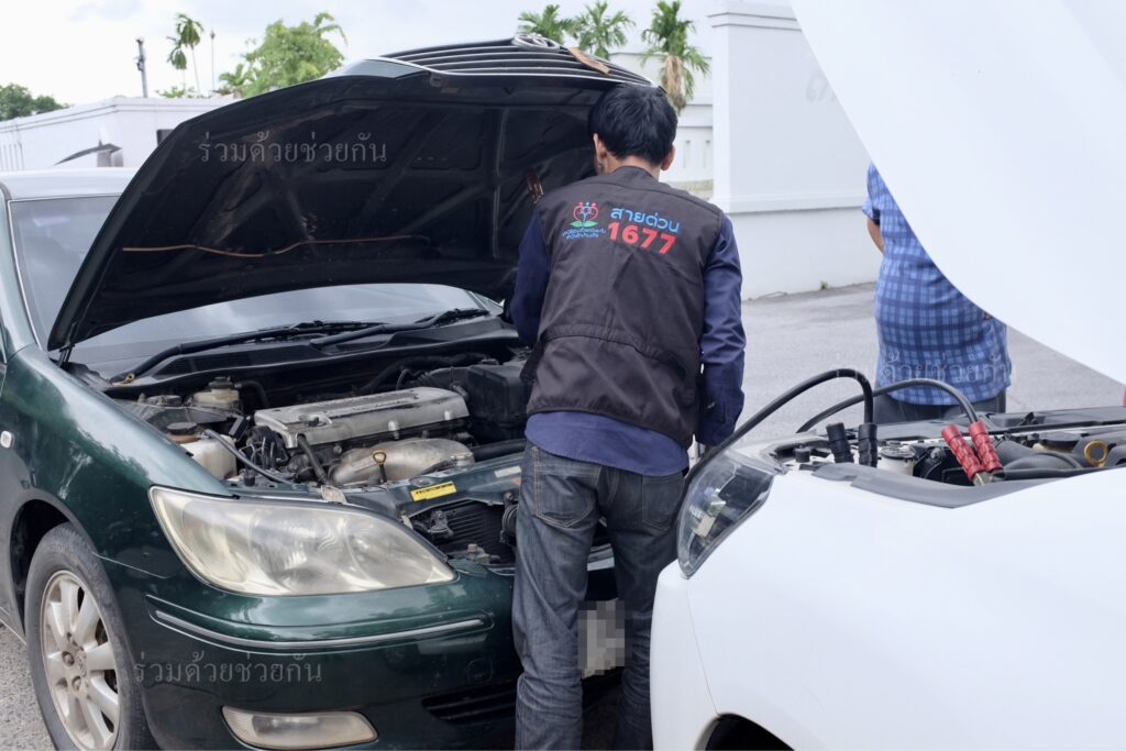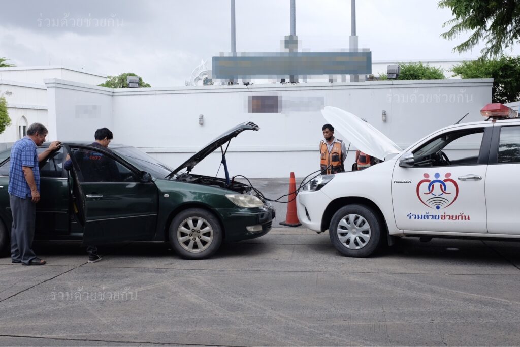 ศูนย์สื่อสารร่วมด้วยช่วยกัน ประสานอาสาร่วมด้วย 021 นำอุปกรณ์เข้าช่วยเหลือ ทำการพ่วงแบตเตอรี่รถให้ รถสตาร์ทเครื่องยนต์ติด ขับเคลื่อนไปต่อได้ตามปกติ